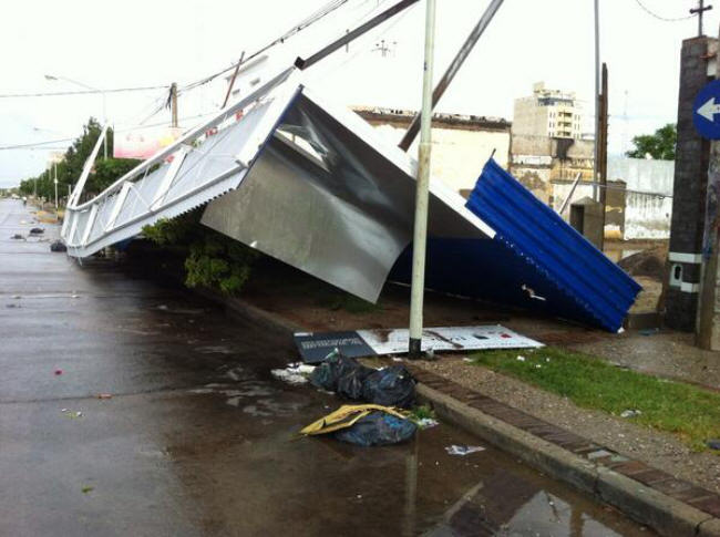 Hubo lluvia, granizo y fuertes vientos. Se rompieron vidios en un shopping. El jefe de la policía local informó que cayeron árboles, mamposterías, carteles y techos de chapa.