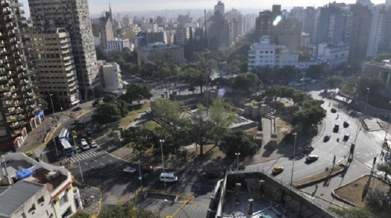 El municipio se apresta a agregar un carril a los cuatro existentes de la rotonda de Plaza España, achicando las veredas en el sector.