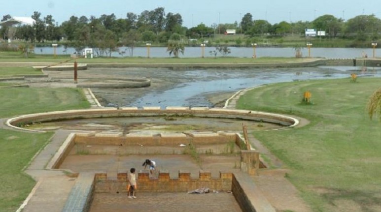 En el sector del balneario, ubicado sobre 1º de Mayo a mano izquierda, los piletones están vacíos y se ven oscuros. Las escaleras y accesos por rampas presentan rajaduras, tienen la pintura desgastada y grietas por el accionar de las raíces de las árboles. En cambio, los asadores se ven en buen estado.