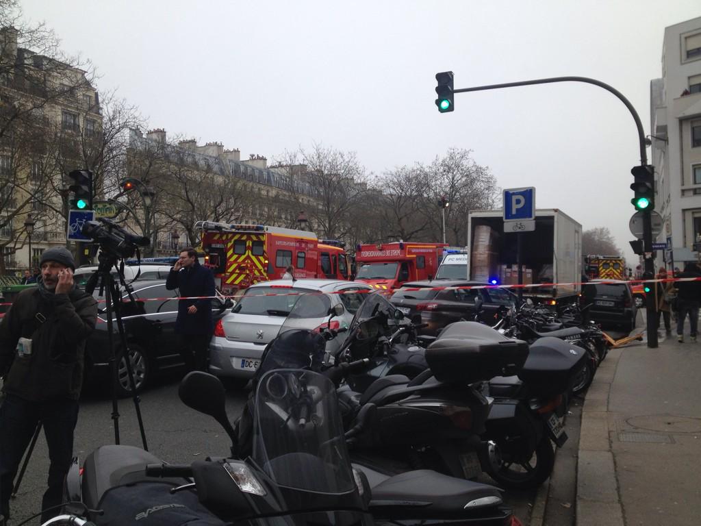 Vincent Justin, un periodista que trabaja en un edificio junto a la sede del semanario satírico, explicó que fueron dos personas las que entraron en la redacción y dispararon contra el personal.