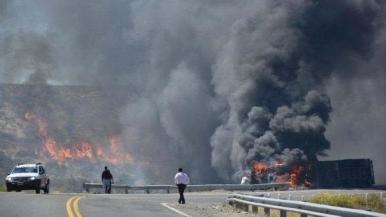 Un accidente de tránsito este jueves por la tarde en Neuquén causó un feroz incendio forestal. El camionero se quedó sin frenos y volcó en una curva en la zona de Collon Cura. Su motor estalló y las llamas se propagaron en cuestión de segundos por los pastizales. Desde entonces intentan sofocar el fuego.