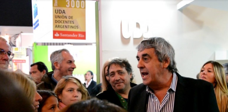 El dirigente docente informó los libros escritos por afiliados que se presentaron en la locación de la entidad en la Feria.