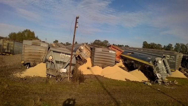 Un espectacular descarrilamiento produjo susto esta mañana en Ibarlucea, pero por fortuna, ningún herido. Al menos 15 vagones se salieron de las vías al costado de la ruta 34 a la altura del kilómetro 3 y dejaron desparramado en el asfalto gran cantidad de cereales. Tránsito normal en la zona.