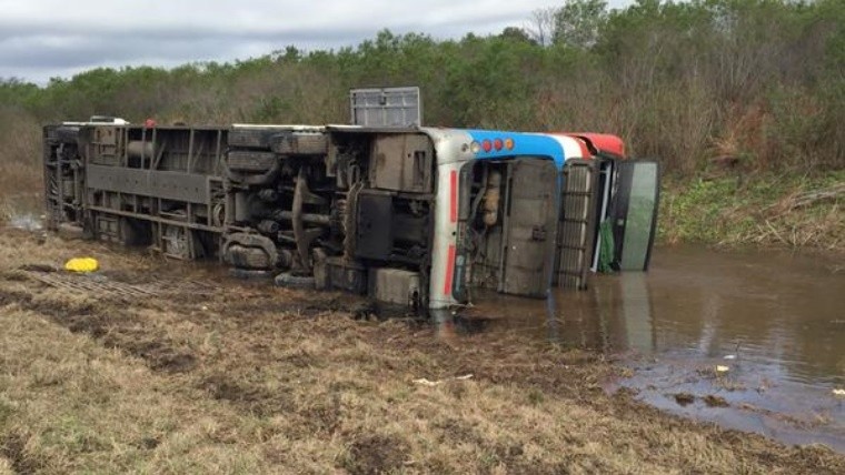 Según informó el periodista de De 12 a 14 Guillermo Brasca (El Tres) el siniestro vial se produjo cerca de las 12 en el kilómetro 28 de la autopista Rosario-Santa Fe cuando el colectivo que llevaba aproximadamente unos 60 pasajeros cayó sobre la cuneta oeste de la traza provincial.