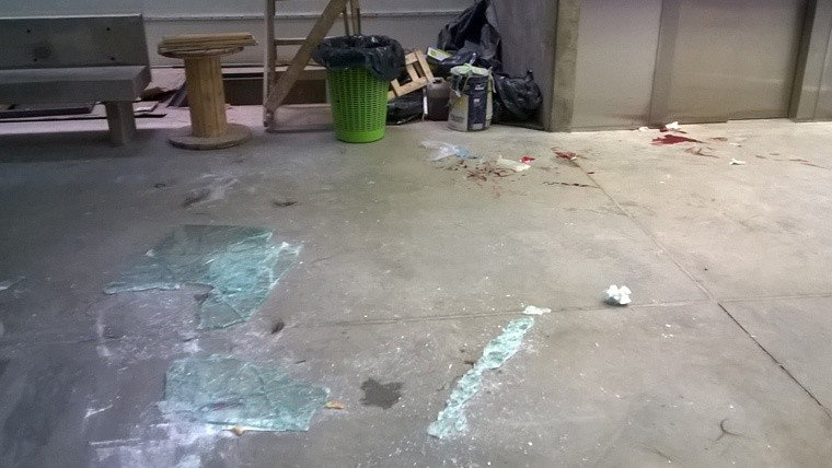 Cayó un vidrio de una obra de Humanidades y cortó a estudiante