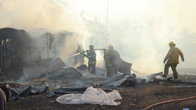 Se incendió chatarrería vecina a galpón de una empresa de colectivos