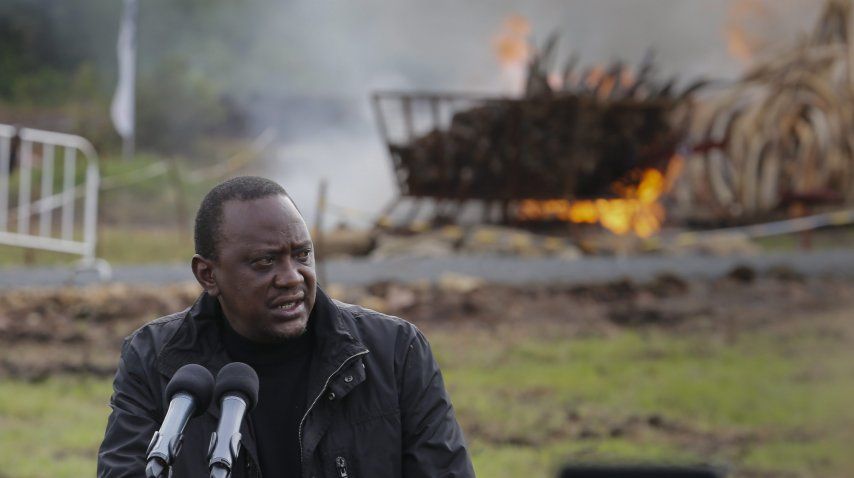 El presidente de Kenia anunció de este modo el compromiso de su gobierno con la lucha contra el tráfico de colmillos de elefante y cuernos de rinoceronte.