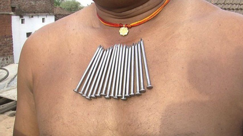 Un hombre de Madhya Pradesh, en la India, asegura ser una suerte de Magneto en la vida real debido a que es capaz de adherir piezas metálicas a su cuerpo gracias a una atracción magnética incontrolable.