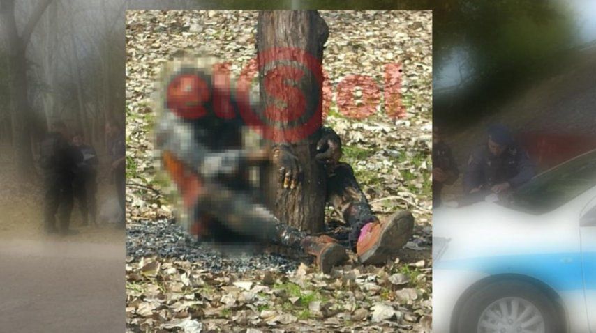 El cuerpo es de un sujeto de 63 años. Fue encontrado en Maipú, atado con alambres a un árbol y quemado. Las pesquisas se orientan a un suicidio debido a que el hombre dejó un escrito. LAS IMÁGENES PUEDEN HERIR LA SENSIBILIDAD DEL LECTOR.