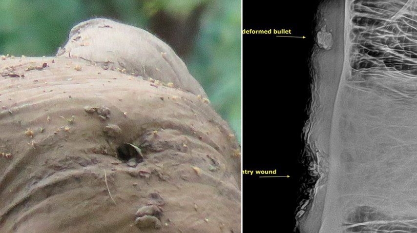 Keith Dutlow y Lisa Marabini se acercaron el lunes pasado al parque nacional para tratar a dos elefantes que habían sido heridos y se sorprendieron cuando uno de sus pacientes salió a recibirlos: era Pretty Boy, que tenía una bala "deformada" alojada en el cráneo.