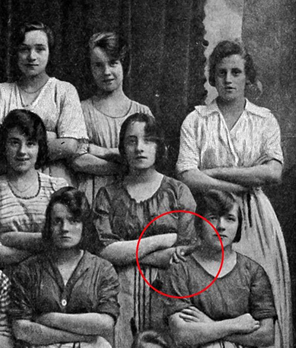 Pero en la imagen que recorrió el Reino Unido puede verse algo extraño y "fantasmagórico" en el hombro derecho de una de las jóvenes trabajadoras. Una mano que no pertenece a nadie posa sobre la mujer, sin que esa extremidad pertenezca a alguna otra de las presentes.
