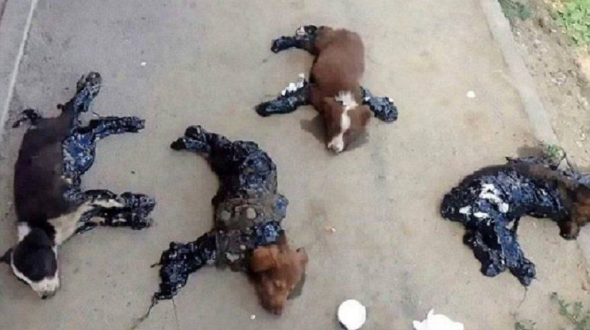 Crueldad sin límites: cuatro perros fueron pegados al asfalto con alquitrán