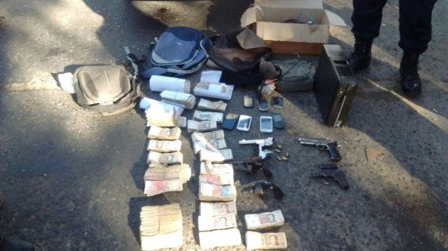 La policía secuestró cuatro armas de fuego y una réplica, además de un Fiat Palio color gris con patente correspondiente a un Renault 11 y cristales de un Ford Fiesta. También encontraron la suma de 150.469 pesos.