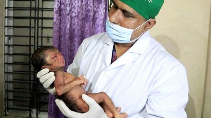 Un curioso caso conmueve a Bangladesh: un bebé nació cubierto por pelo y muchas arrugas, que le da un aspecto extraño, similar al de un anciano.