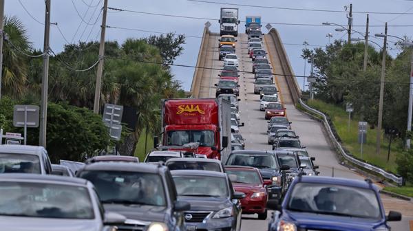 Las carreteras de Florida, Georgia y Carolina del Norte y del Sur estaban congestionadas y los suministros escaseaban en las estaciones de servicio y tiendas de alimentos antes de la llegada del huracán, que desplazaba vientos sostenidos de unos 185 kilómetros por hora en su paso por Bahamas y generaba fuertes lluvias.