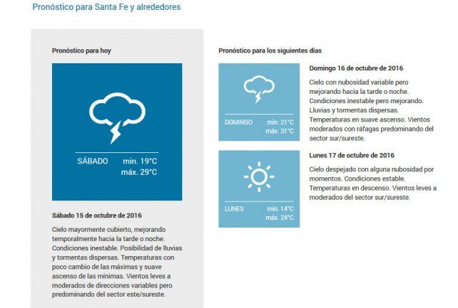 Según el informe del organismo: "áreas de lluvias y tormentas aisladas tienden a intensificarse sobre la zona de cobertura. Se espera que algunas se presenten localmente fuertes, estando acompañadas de abundante caída de agua en cortos periodos, caída de granizo, fuerte actividad eléctrica y ráfagas.