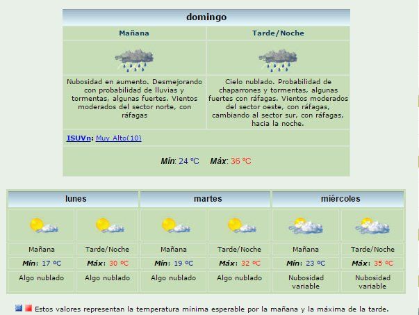Por su parte, las temperaturas tendrán una mínima de 24º y una máxima de 36º. El lunes, mejorarían las condiciones climáticas.