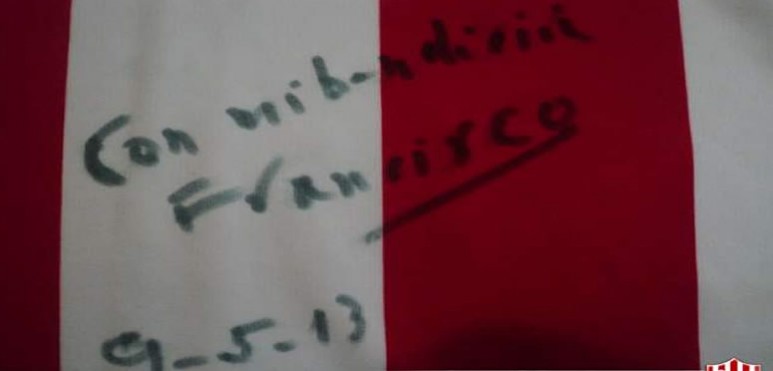 Este martes, minutos después de las 20.30, la página web oficial del Club Atlético Unión publicó una nota con el título “El Papa Francisco con la Rojiblanca”. La misma, reza lo siguiente: “El Departamento de Prensa de Unión, a través de un unionista, el Periodista Gustavo Risso Patrón, hizo llegar a su santidad el Papa Francisco una camiseta de obsequio mientras que regresó a Santa Fe una segunda camiseta con la firma de la máxima autoridad de la Iglesia Católica.