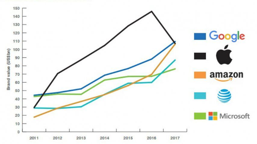 La edición 2017 del conteo Brand Finance Global 500, que agrupa a las empresas más valiosas del mundo, trajo pocas sorpresas pero un cambio notable: Google volvió al primer puesto después de seis años y dejó a Apple en el segundo puesto.