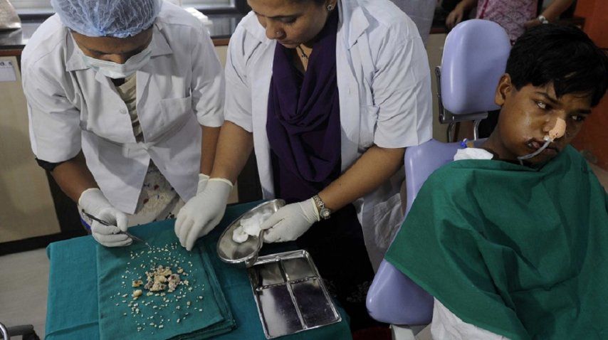 Un joven de India fue operado del paladar porque no soportaba el dolor que le generaban sus más de doscientos dientes, producto de una suerte de tumor benigno.