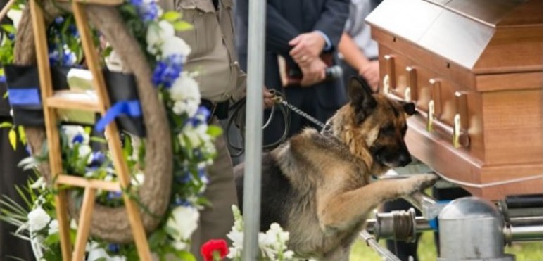 Una conmovedora foto del funeral del policía Jason Ellis, de Kentucky, es la mejor muestra del increíble lazo que existe entre los perros policías y sus compañeros de trabajo.