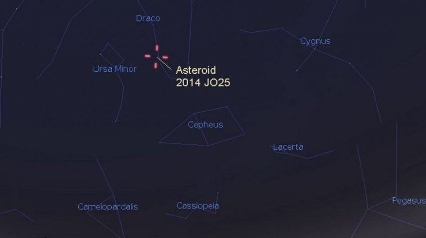 Con un diámetro cercano a los 650 metros, el "2014 JO25" se encuentra de camino hacia la Tierra y este miércoles estará a 1,8 millones de kilómetros de nuestro planeta, es decir, 4,6 veces la distancia existente entre la Tierra y la Luna.