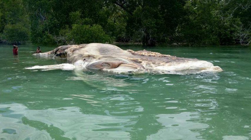Los científicos del lugar no lograron identificar todavía de qué animal se trata. "Vamos a tomar muestras de carne para hacer pruebas en el laboratorio y poder determinar qué tipo de animal es", dijo Nasrul Latulanit, de la Oficina de Gestión de Recursos Marinos y Costeros.