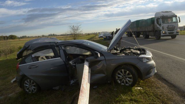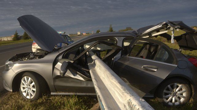 Un importante choque sin heridos de gravedad se produjo esta mañana en la autopista Rosario - Buenos Aires, cuando el conductor de un Mercedes Benz gris perdió el control de su vehículo y chocó contra un guardarrail, que atravesó de lado a lado el coche.
