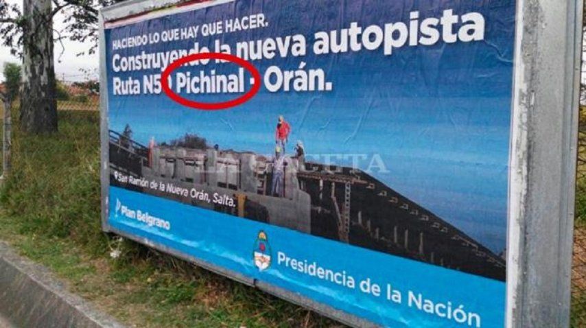 El Gobierno Nacional protagonizó otro papelón al nombrar mal a una localidad en una publicación. Esta vez se trató de carteles sobre la finalización de obras en la Ruta Nacional 50.