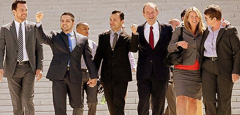 En dos decisiones muy ajustadas que coronan varios años de esfuerzos individuales, apasionado debate público y múltiples procesos judiciales, el Supremo declaró inconstitucional la ley que limita el matrimonio a la unión entre un hombre y una mujer, y rechazó la decisión del estado de California de prohibir el matrimonio gay. Con estas medidas –ambas adoptadas por 5 contra 4-, los magistrados están advirtiendo que los homosexuales casados están protegidos por los mismos derechos y amparados por las mismas leyes que los heterosexuales, incluidos todos los beneficios sociales, y, probablemente, aunque esto aún motivo de interpretación, que nadie puede abrogarse el poder de prohibir expresamente los matrimonios gays.