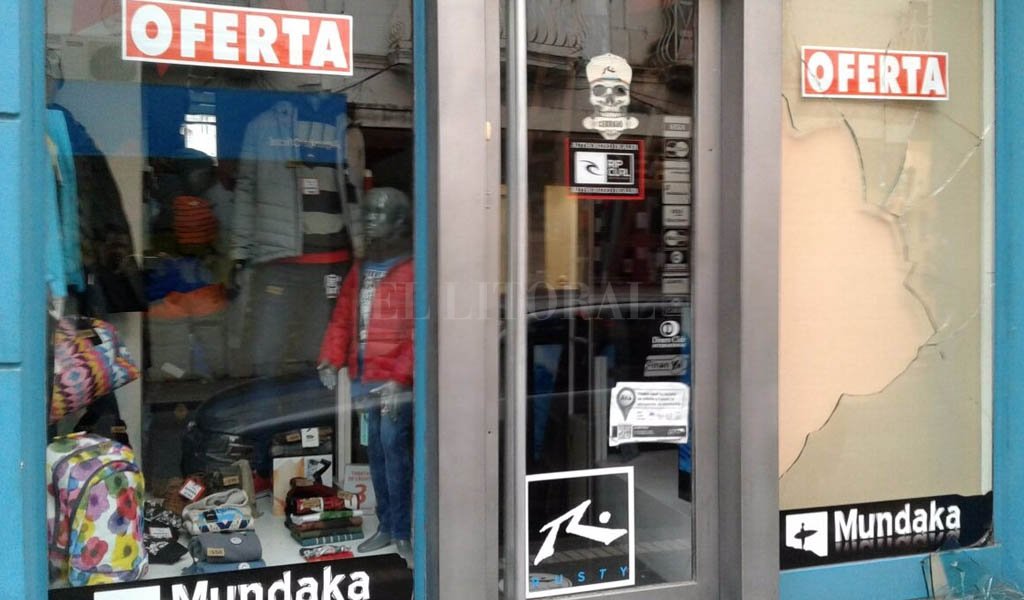 Momentos antes un sujeto había arrojado una baldoza contra el frente del local, destruyendo una de las vidrieras. Acto seguido ingresó al comercio y, en contados segundos, “manoteó’ las prendas que estaban en un maniquí para finalmente darse a la fuga.