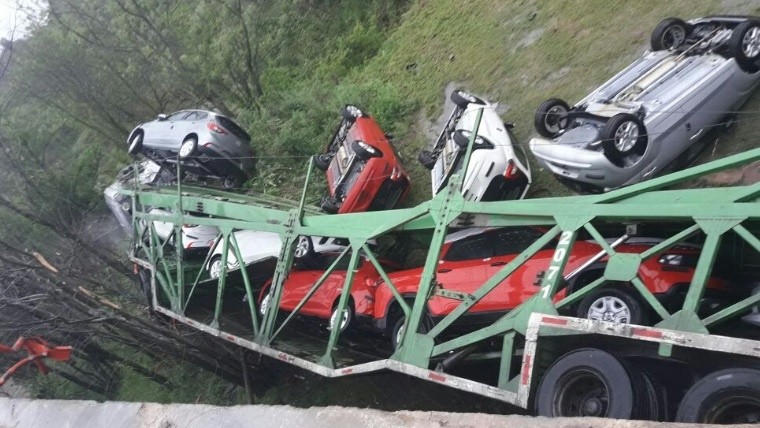 De acuerdo a la información oficial, el conductor del camión que trasladaba autos se encontraba fuera de peligro.