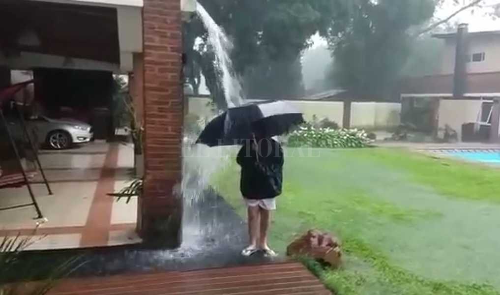 Ocurrió en la provincia de Misiones en la última tormenta que se registró en el noreste del país. Como se ve en el video, un chico juega en el patio de su casa bajo la intensa lluvia sin pensar que lo peor podría suceder.
