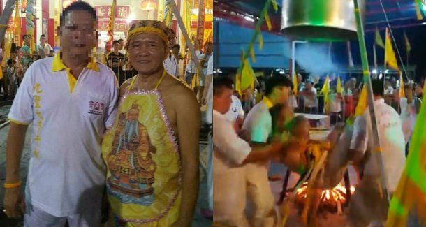 Lim Ba se sentó en el centro del altar durante la ceremonia de los Nueve Emperadores Dioses en un templo chino de la localidad de Kuala Sanglang, al norte de Malasia pero a los 30 minutos de empezar su "limpieza espiritual" con vapor tuvo que golpear la campana para que lo dejaran respirar.