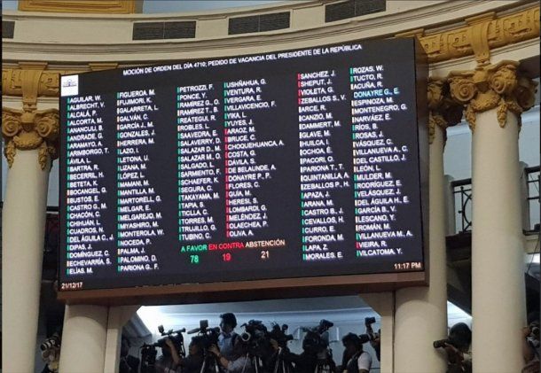 Tras más de 13 horas de sesión, el pedido de vacancia obtuvo 79 votos a favor, 19 en contra y 21 abstenciones y no fue aprobado porque la ley indica que necesitaba del apoyo mínimo de 87 de los 130 legisladores, según consignaron las agencias Andina y EFE.