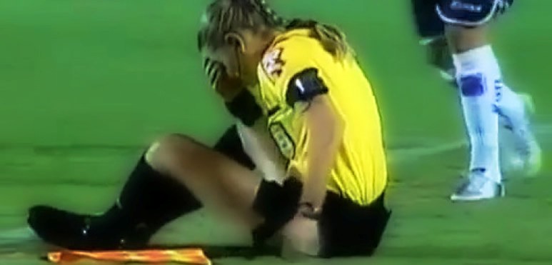 Durante el partido entre Atlético Goianense y Paraná de la Segunda División de Brasil se dio una situación poco afortunada que dejó a una juez de línea durante varios minutos knock out, en su afán por seguir de cerca el juego la asistente recibió un despeje de lleno en la cabeza que la dejó aturdida en el piso.