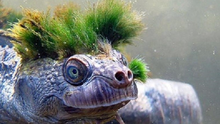 La mecionada tortuga vive únicamente en el río Mary, en Queensland, Australia. Mide unos 40 centímetros de largo y es conocida como la tortuga punk, por su extraña cresta verde.