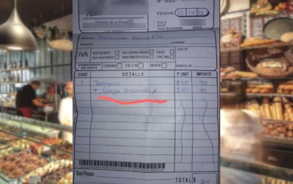 La confitería se negó a darle la factura como comprobante porque estaba vencida y sólo pudo sacarle una foto para dar testimonio del sorpresivo cobro por cargar su computadora.