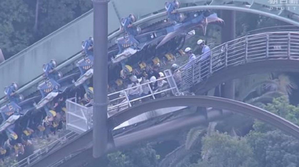 En la atracción viajaban 64 personas entre gritos y risas, hasta que se activó la parada de emergencia, probablemente debido a una falla en el motor, según el medio japonés Asahi.
