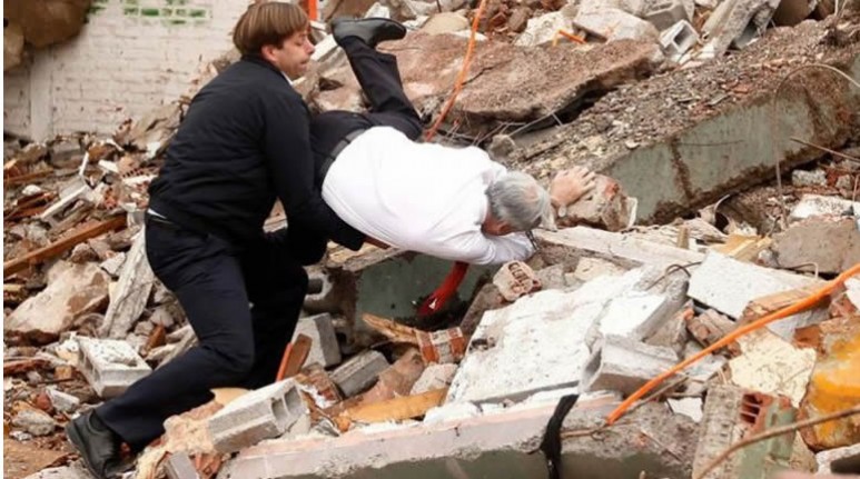 Blooper del presidente de Chile mientras supervisaba una demolición
