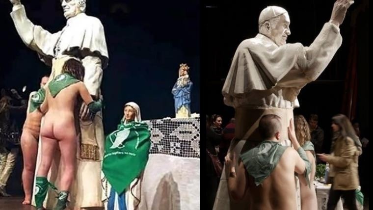 El diario El Ciudadano publicó que en Rafaela, ciudad santafesina declarada por Ordenanza Municipal como ciudad ProVida –desde marzo de este año busca ampliar esa denominación a capital provincial ProVida y familia–, se generó un debate entorno a una obra de teatro llamada Dios, en la que suben al escenario una imagen gigante del papa Francisco y otra más pequeña de la virgen María y, sobre ellas, dos personas desnudas les colocan pañuelos verdes.