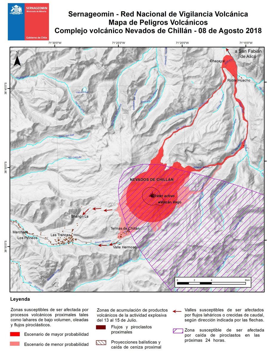 Este tipo de explosiones "involucran una alta energía en su desarrollo y sugieren que el sistema volcánico podría incrementar su nivel de actividad", aseguró el Servicio Nacional de Geología y Minería y agregó: "es posible la ocurrencia de nuevas explosiones de energía similar e incluso mayor a las ya reportadas, lo que podría implicar un aumento en el nivel de alerta".