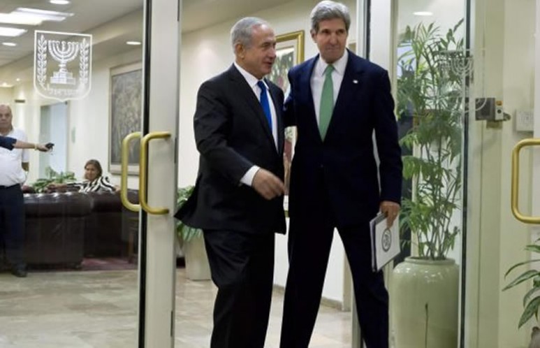 John Kerry y Benjamín Netanyahu, en Jerusalén, antes de su conferencia de prensa conjunta.