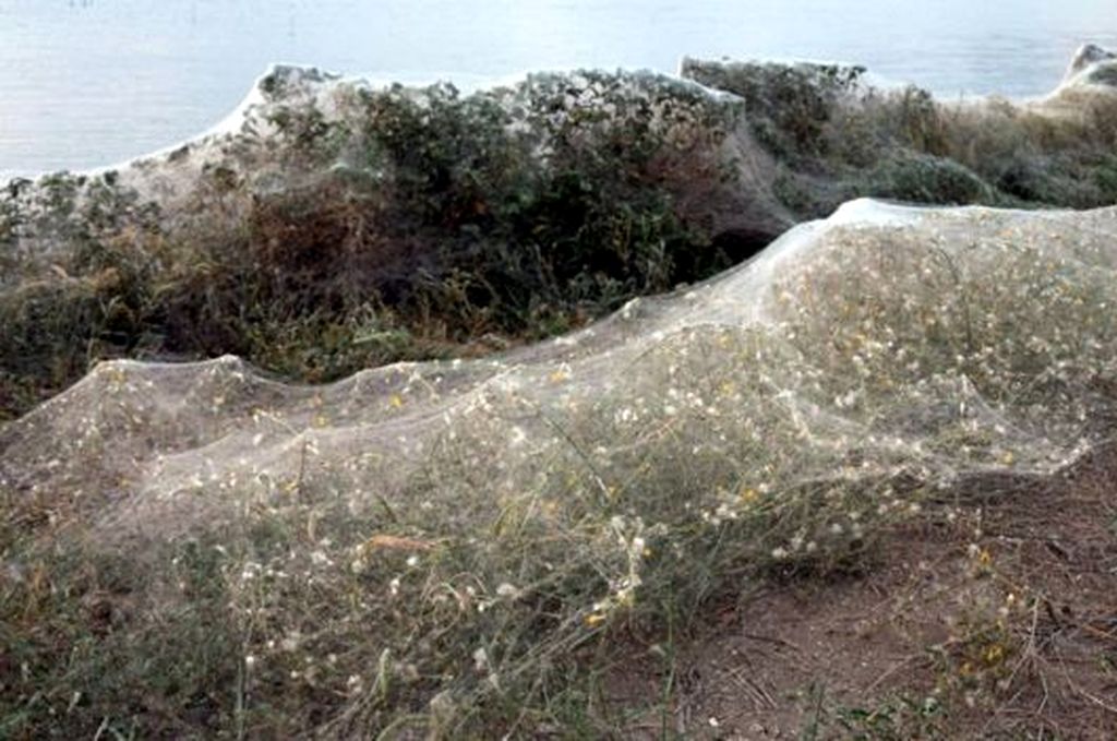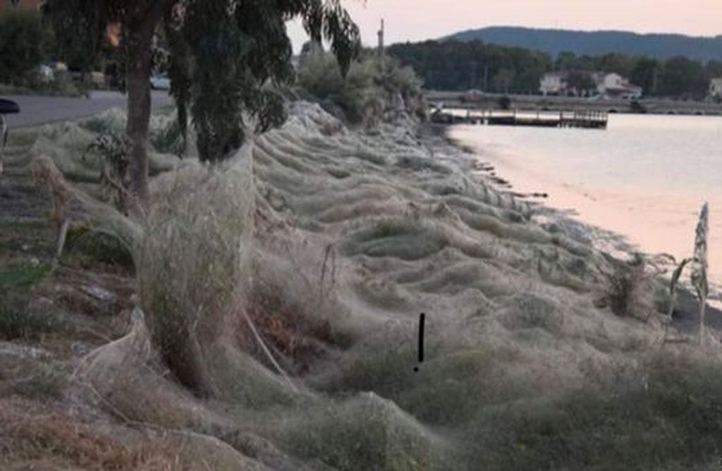 Espeluznante: una telaraña de 300 metros cubrió por completo una playa en Grecia