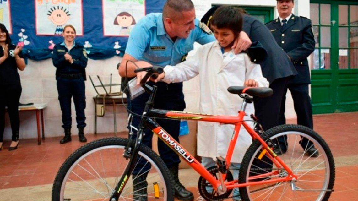 Por su honestidad, la Policía Departamental le regalo pelotas, botines y otros obsequios. También una ayuda económica de $15 mil pesos gestionados por la Capellanía del Departamento Juárez Celman, dinero que la mamá del pequeño utilizará para comprarse una cocina industrial y cocinar allí tortas fritas y pan casero que vende.