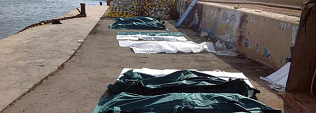Decenas de cadáveres son cubiertos hoy en el puerto de Lampedusa en Italia