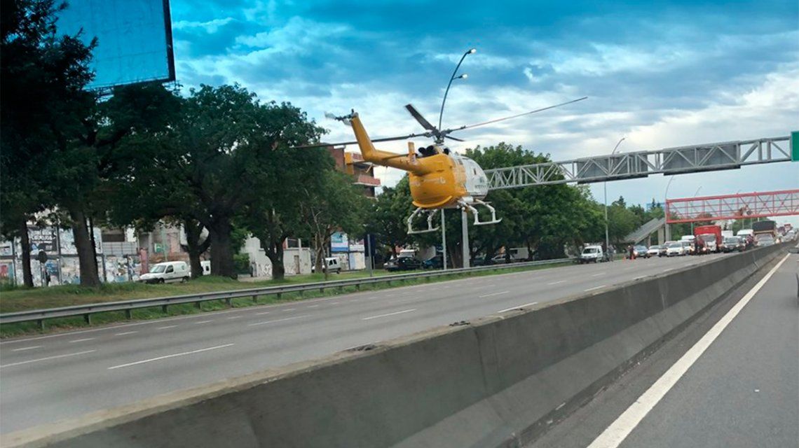 Un helicóptero aterrizó en plena avenida General Paz tras un accidente