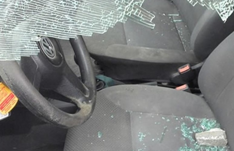 Una piedra rompió el vidrio de la camioneta Volkswagen, chapa patente GNN298, estacionada en la calle, frente a su domicilio particular. También se observaron daños en la pared, cerca del ingreso a su oficina, ubicada en la parte delantera de su residencia.