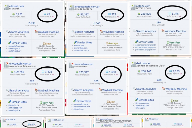 (En la imagen 1 se observan las capturas del informe Alexa según cada sitio realizadas el lunes 5 de agosto de 2019).-